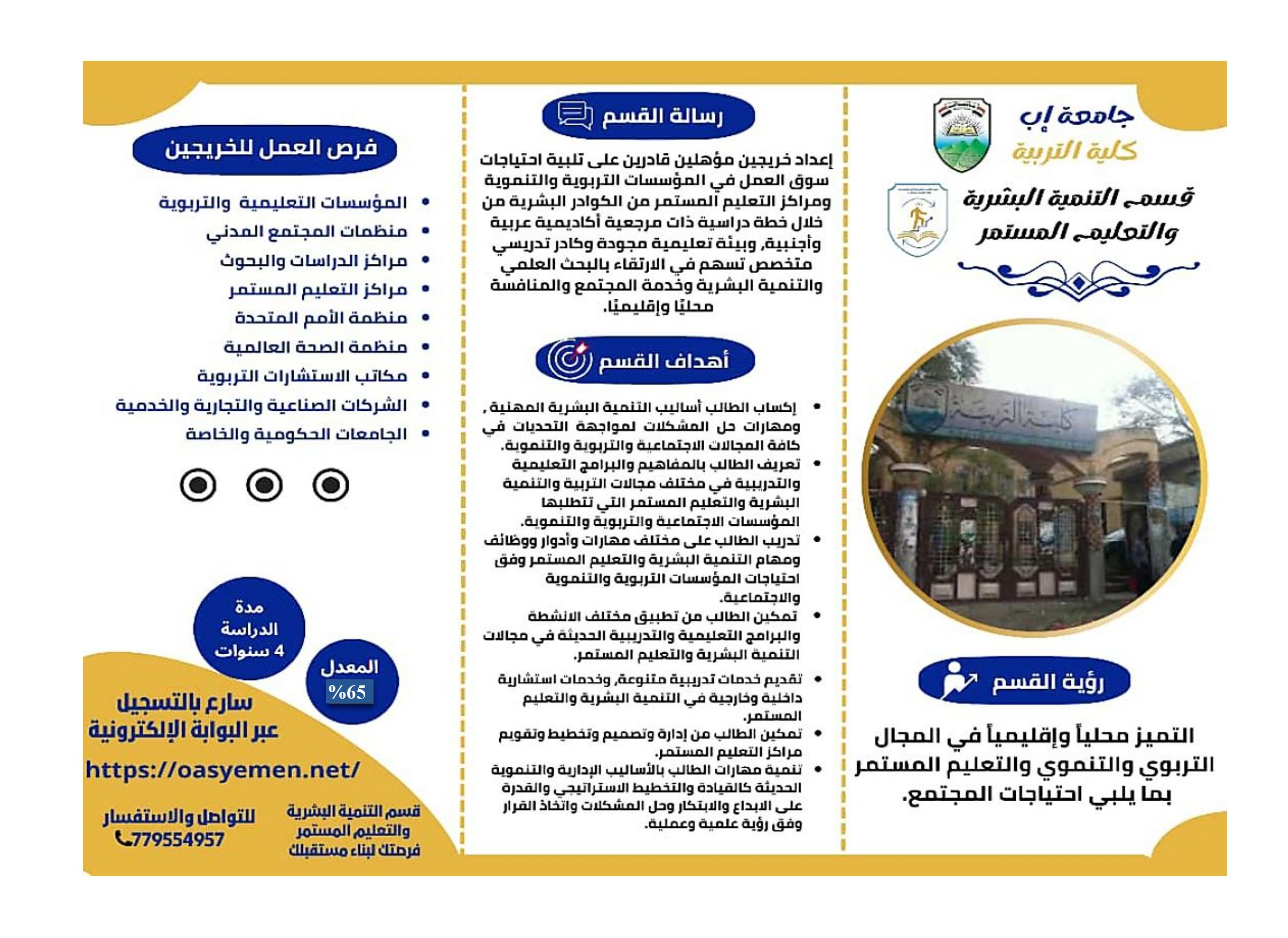 توفير وإعداد الكوادر النوعية والمتخصصة في ميادين الإرشاد النفسي والتربوي، والتربية المبكرة ورياض الأطفال، والتربية الخاصة، وتعليم الكبار "التنمية البشرية والتعليم المستمر".