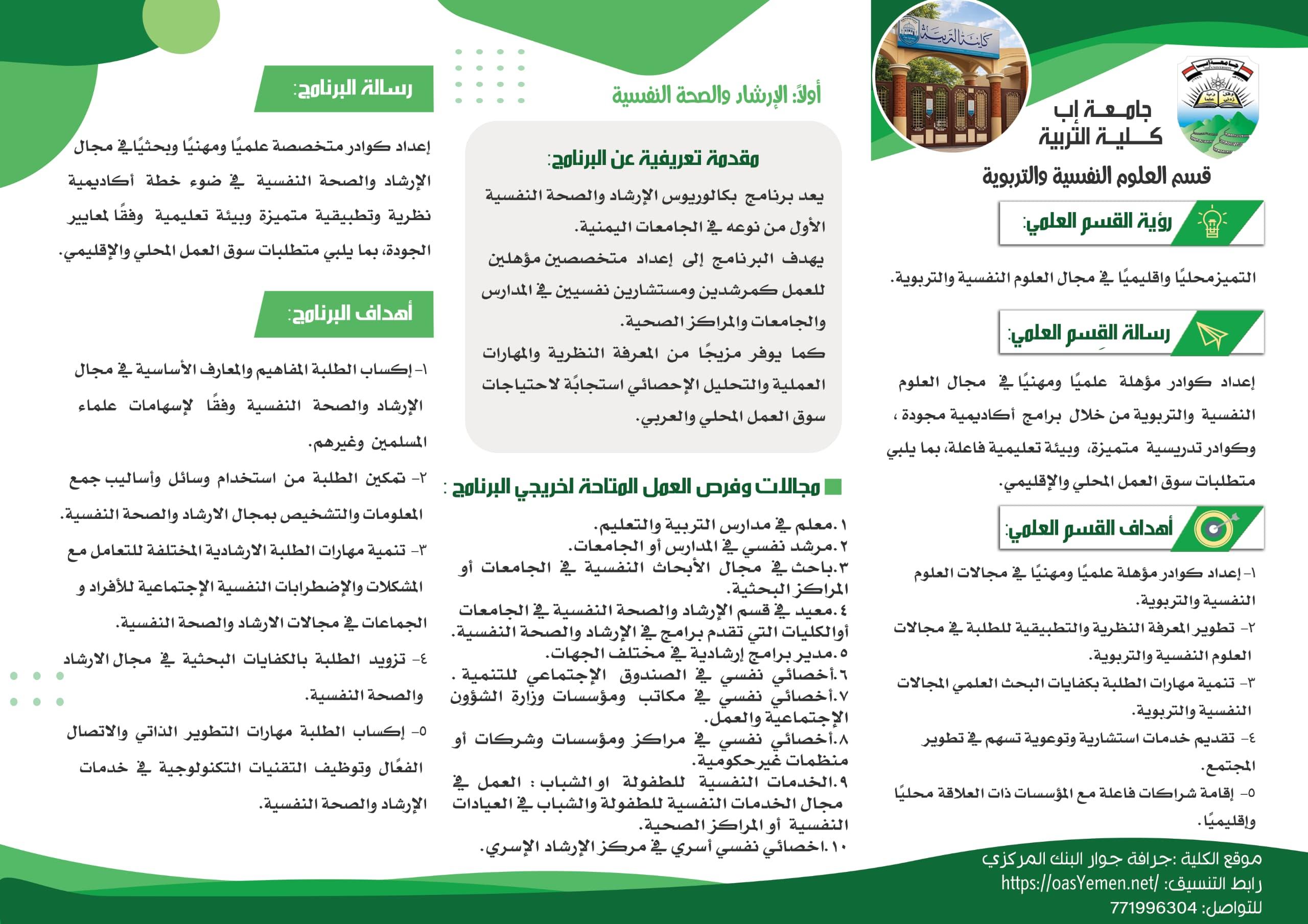 بروشور تعريفي إرشاد تربوي وصحة نفسية كلية التربية جامعة إب