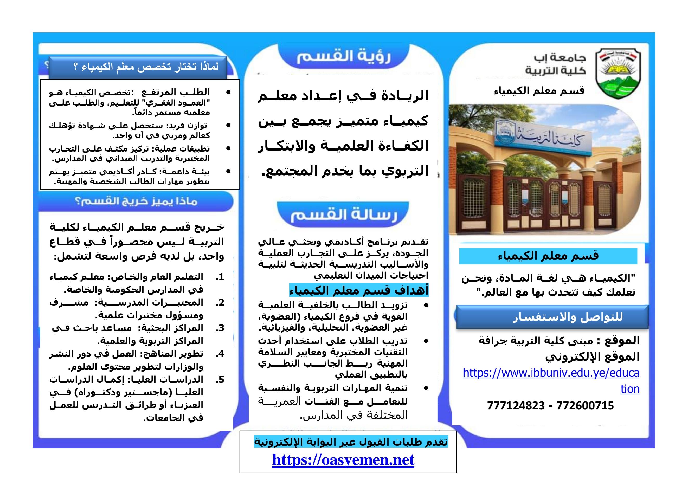 بروشور تعريفي بقسم الكيمياء كلية التربية جامعة إب