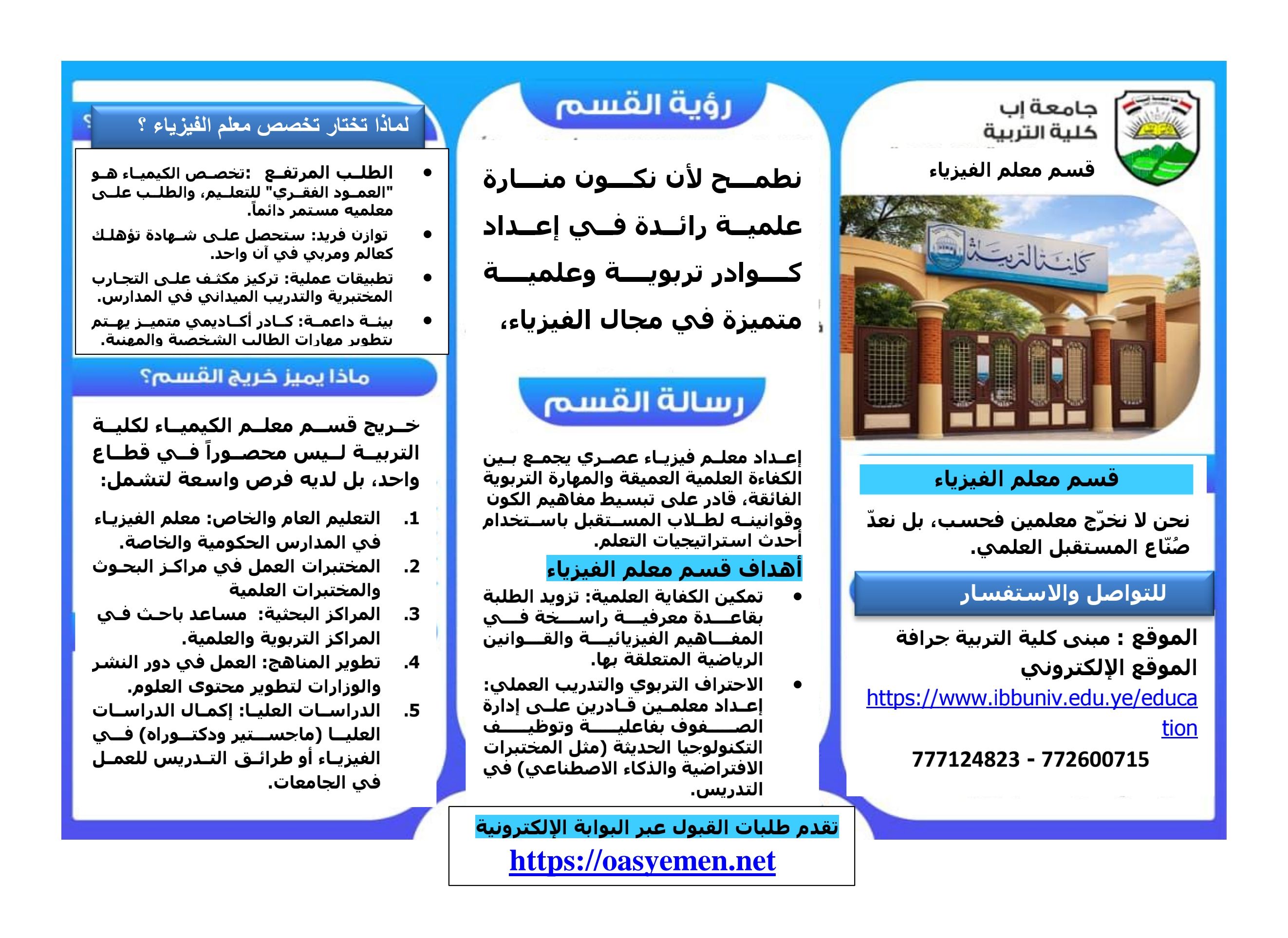 بروشور تعريفي بقسم الفيزياء كلية التربية جامعة إب