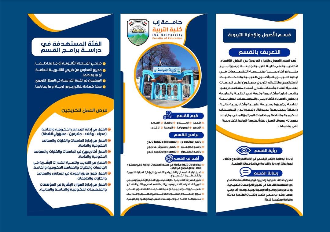 بروشور تعريفي بقسم الادارة واصول التربية كلية التربية جامعة إب