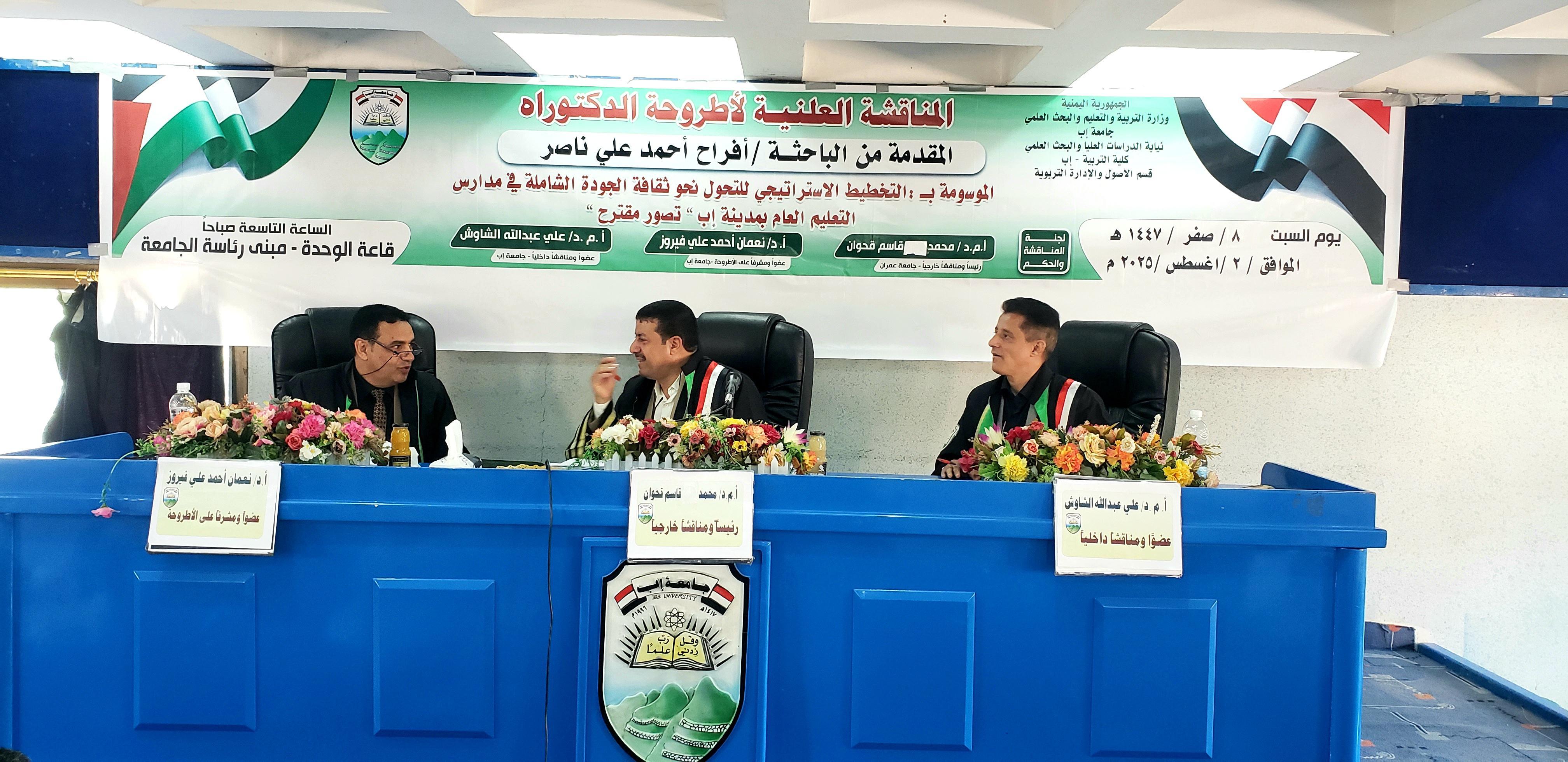 جامعة إب تمنح الباحث أحمد عبود درجة الدكتوراه في الإدارة والتخطيط التربوي