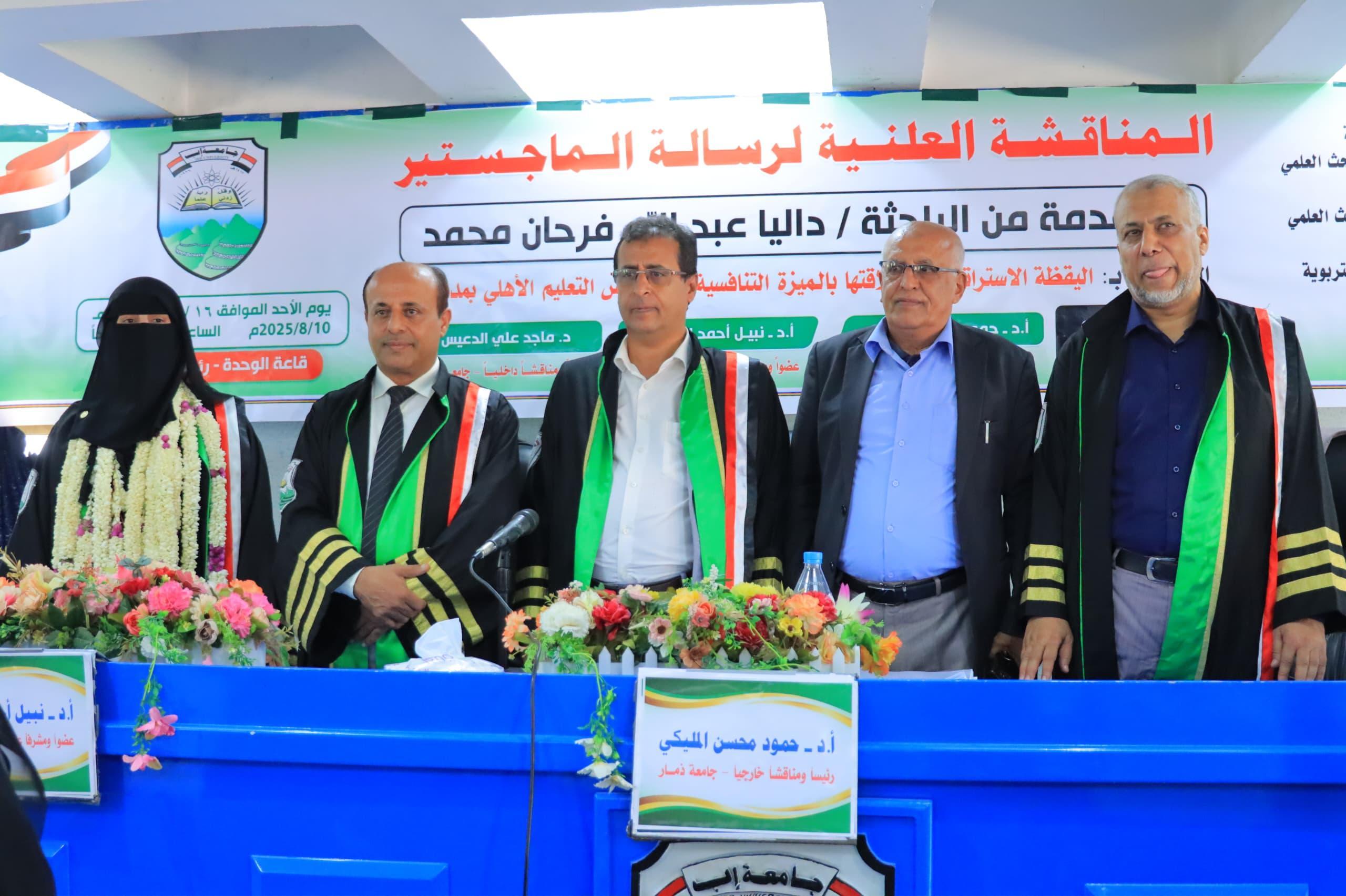 جامعة إب تمنح الباحثة داليا عبدالله درجة الماجستير في الإدارة والتخطيط التربوي