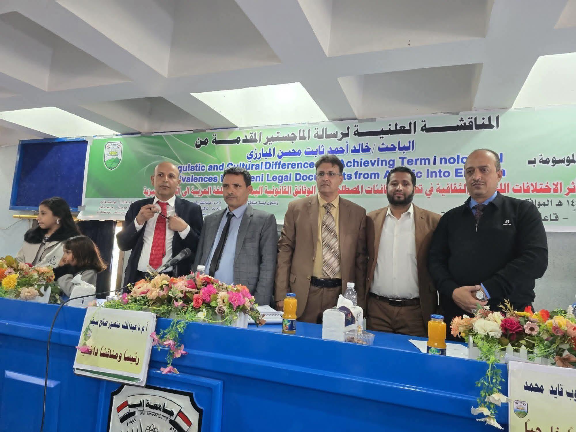 جامعة إب تمنح الباحث خالد المبارزي درجة الماجستير في الترجمة ....