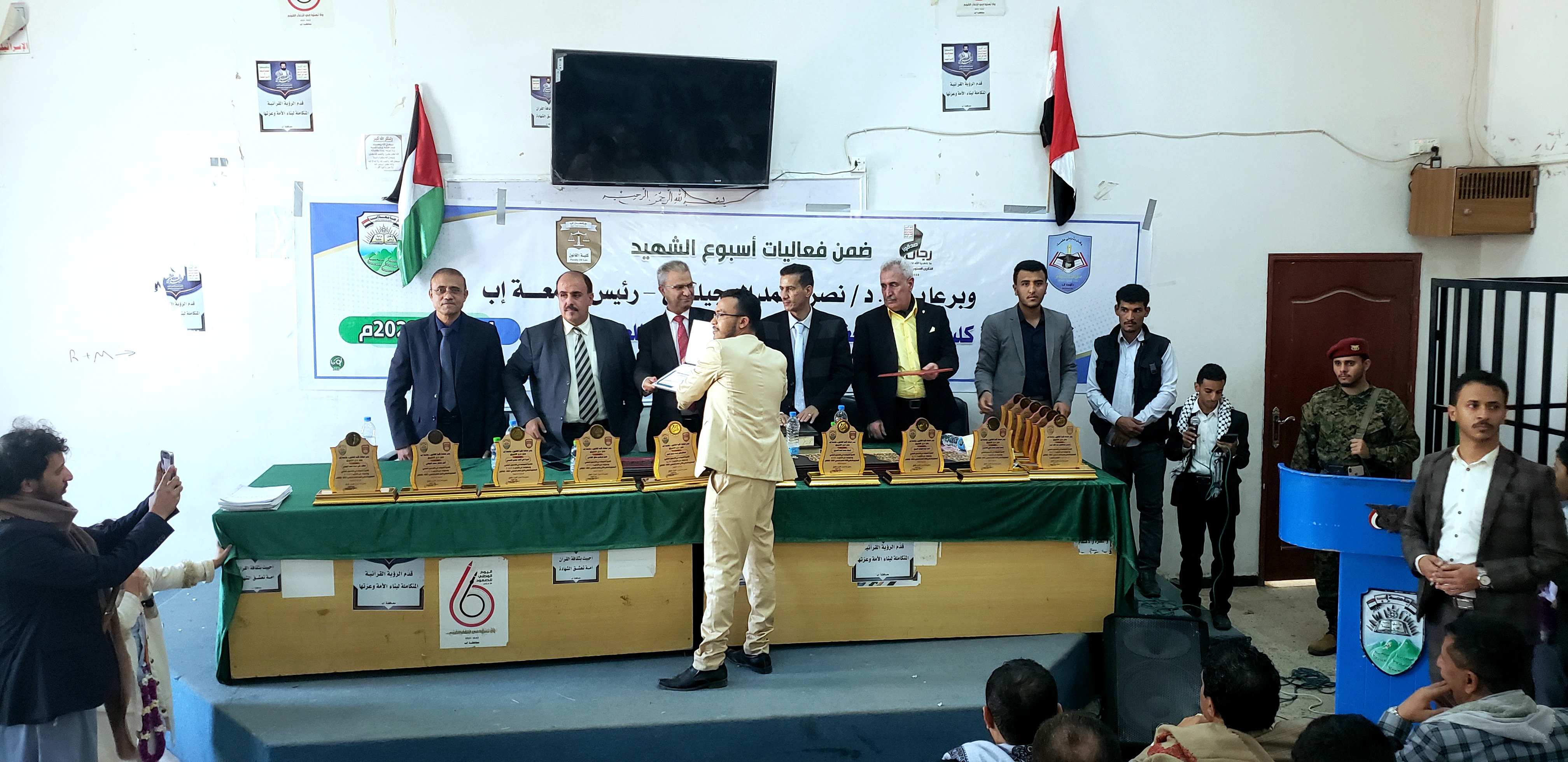 تزامنا مع الفعاليات المقامة بمناسبة الذكرى السنوية للشhيد أقامت كلية القانون بجامعة إب حفلا تكريميا للطلبة الأوائل للعام الجامعي ١٤٤٤هجري.