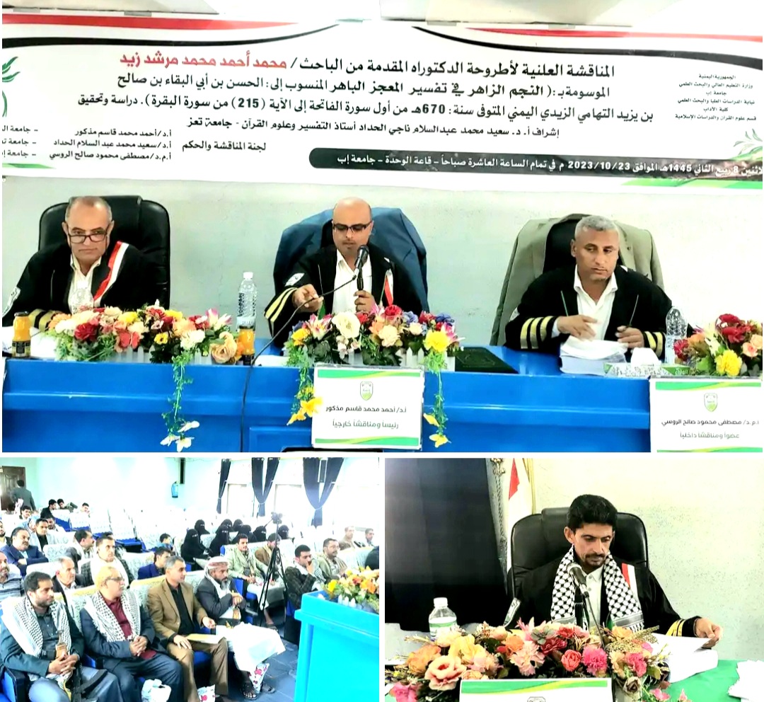 جامعة إب تمنح الباحث محمد زيد درجة الدكتوراه في علوم القرآن والدراسات الإسلامية