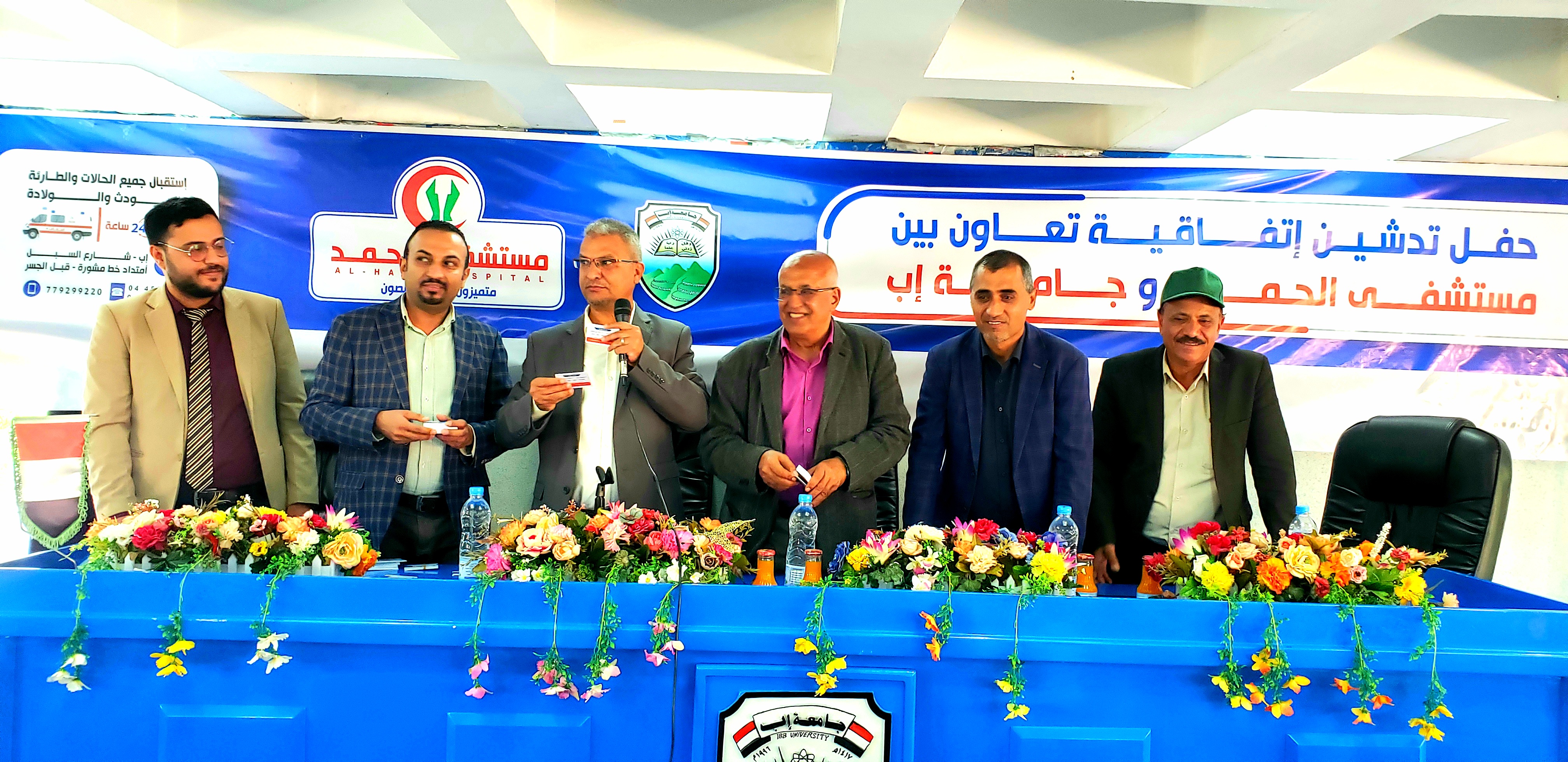 تدشين إتفاقية التعاون المشترك بين جامعة إب ومستشفى الحمد