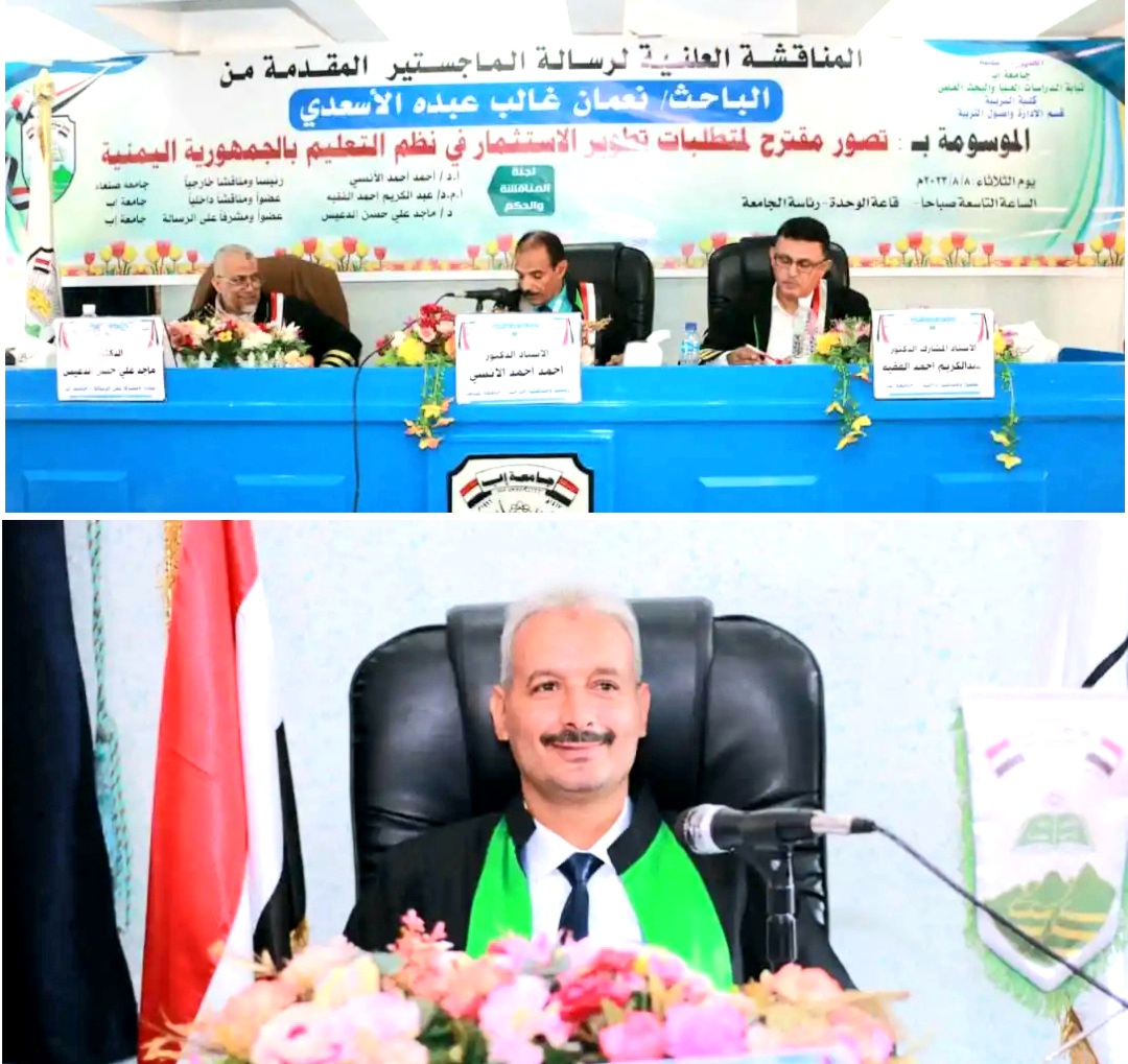 جامعة إب تمنح الباحث نعمان الأسعدي درجة الماجستير في الإدارة والتخطيط التربوي