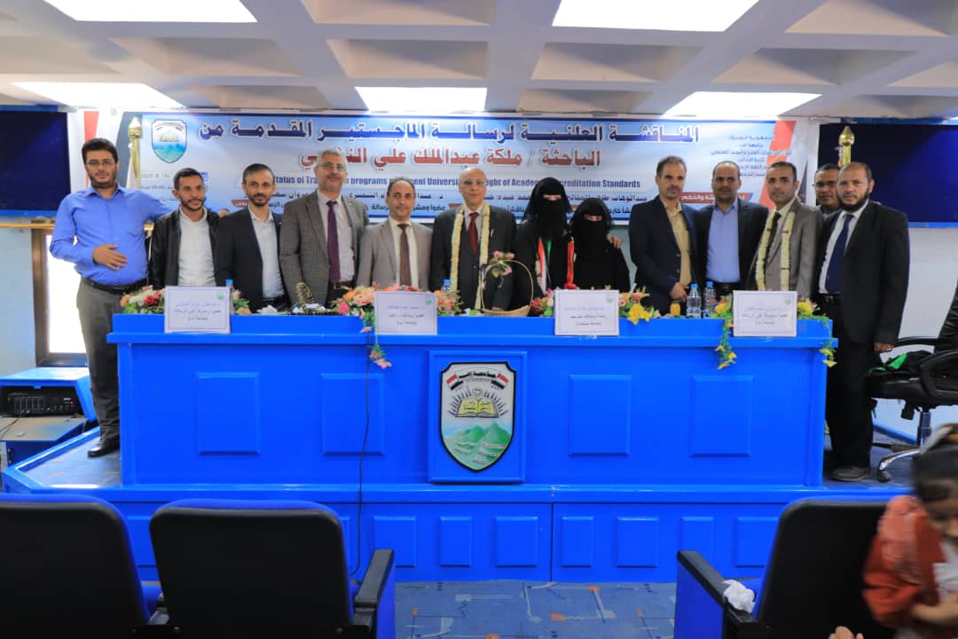 أقيمت بجامعة إب المناقشة العلنية لرسالة الماجستير المقدمة من الباحثة ملكة عبدالملك علي النشمي والموسومة ب*