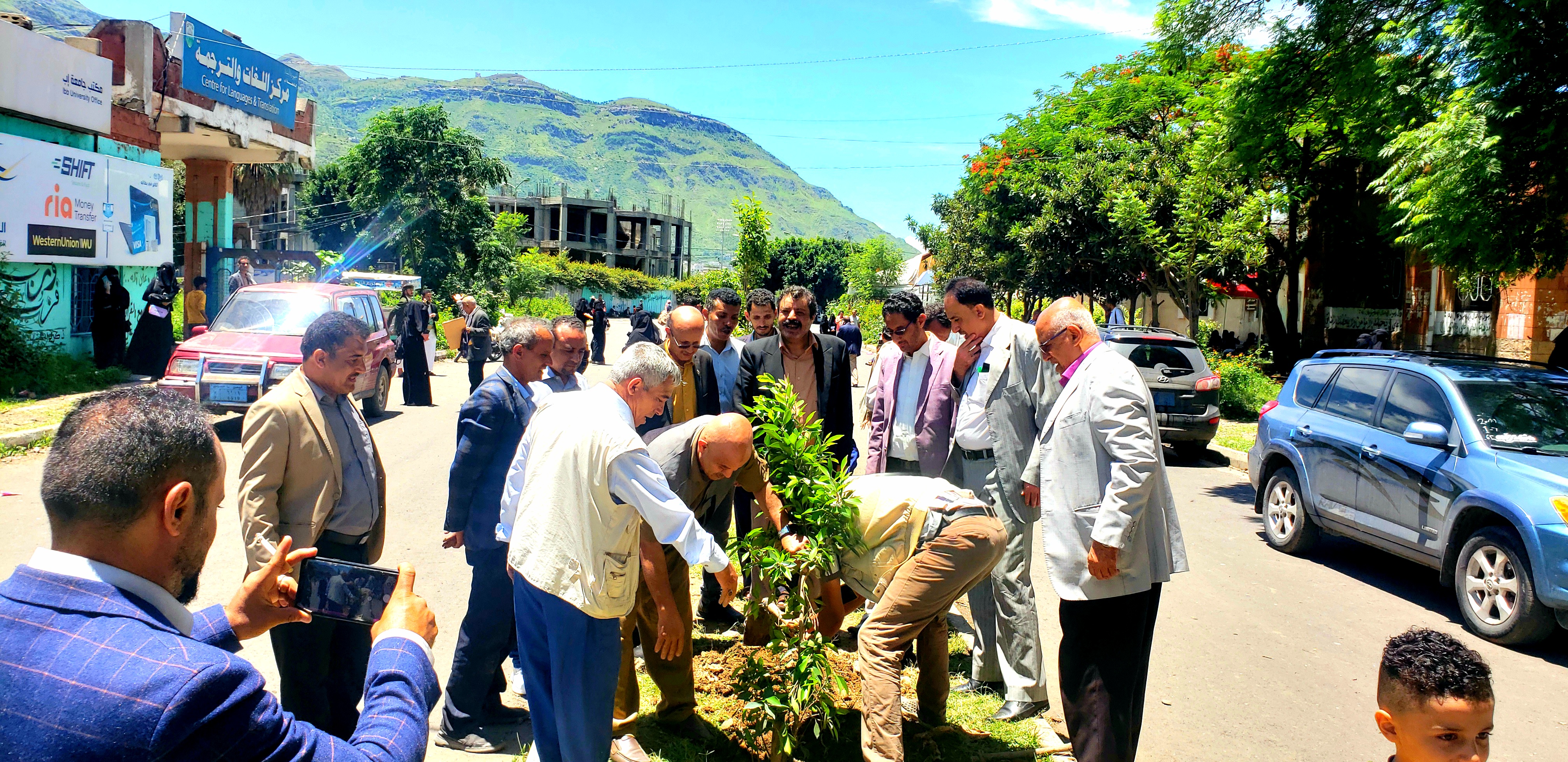 دشن رئيس جامعة إب الأستاذ الدكتور طارق المنصوب حملة التشجير الواسعة للجزر الوسطية في شوارع ومرافق الحرم الجامعي .