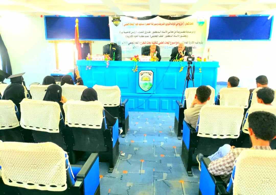 كلية العلوم الإدارية بجامعة إب تدشن أسبوع البحث العلمي لمناقشة أبحاث تخرج طلبة قسم الإدارة العامة