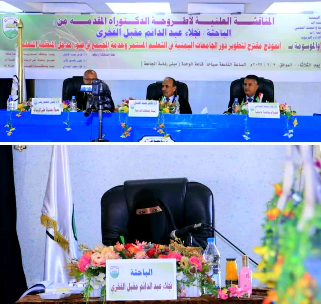 جامعة إب تمنح الباحثة نجلاء الفخري درجة الدكتوراه في الإدارة والتخطيط التربوي
