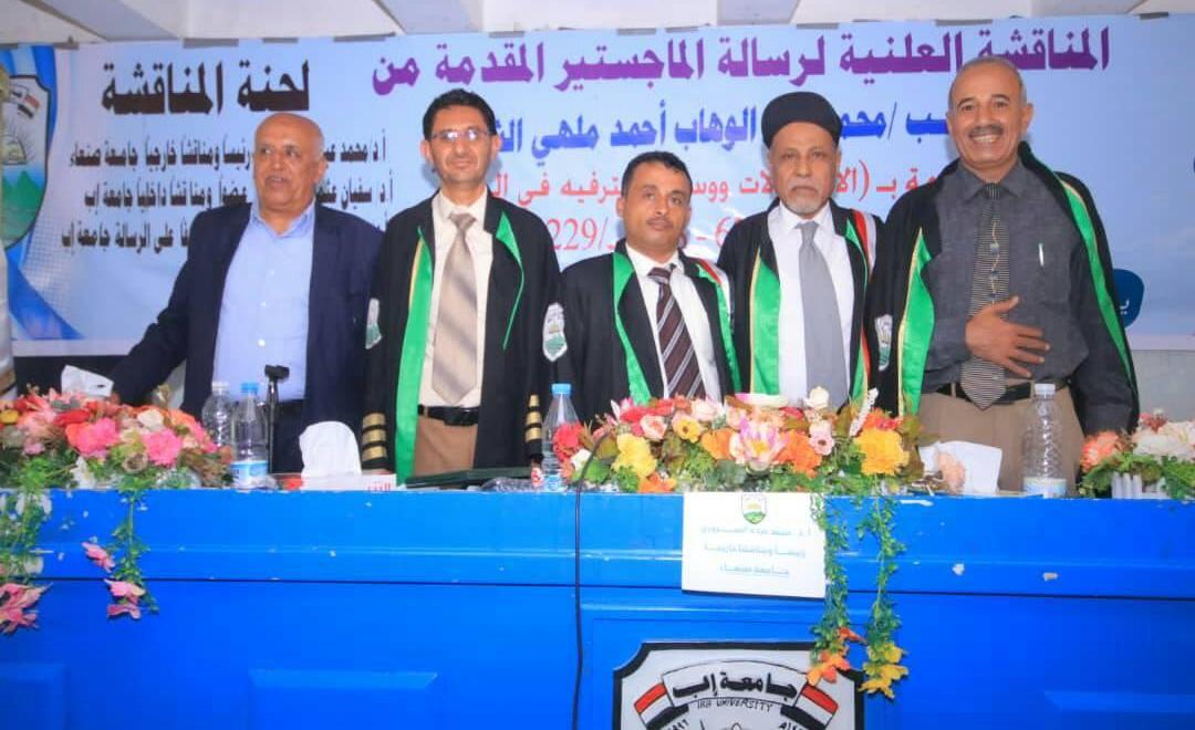 أقيمت في جامعة إب - قاعة الوحدة بمبنى رئاسة الجامعة - المناقشة العلنية لرسالة الماجستير المقدمة من الباحث/ محمد عبدالوهاب أحمد...