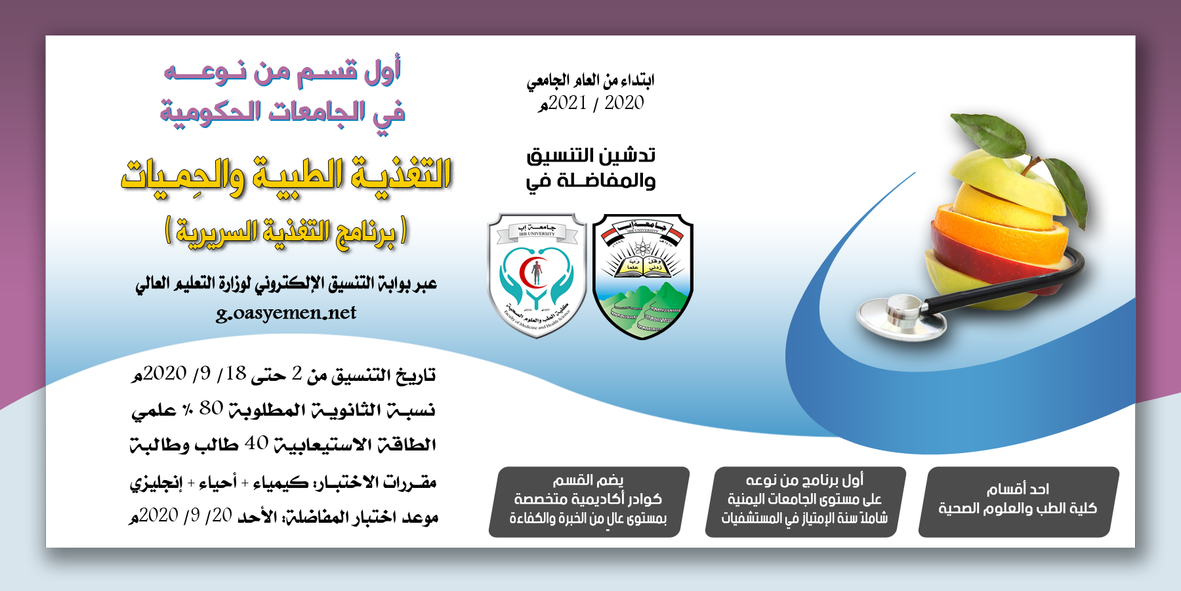فتح باب التنسيق في برنامج التغذية السريرية - كلية الطب والعلوم الصحية للعام الجامعي 2020-2021م