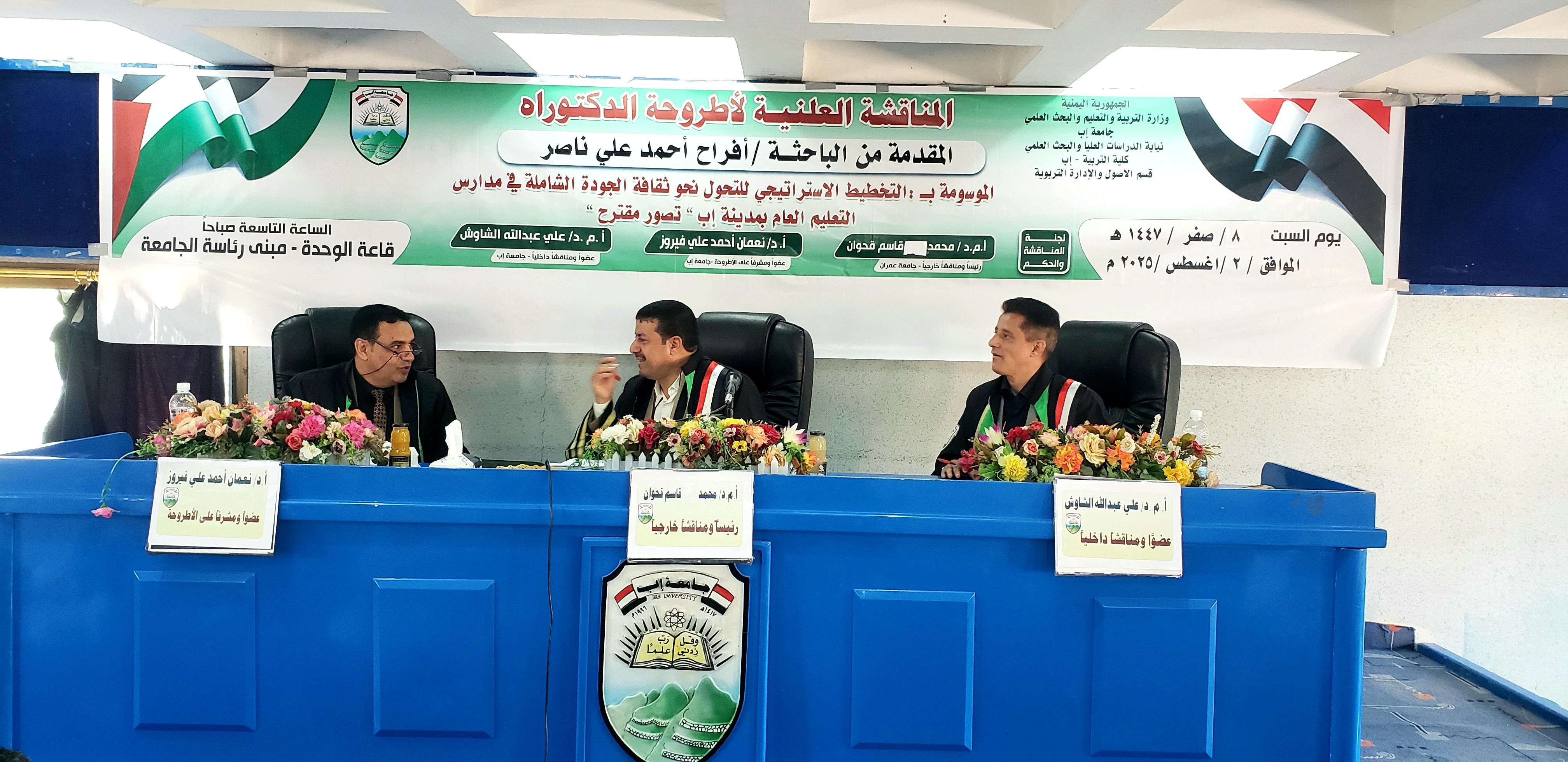 جامعة إب تمنح الباحثة أفراح أحمد درجة الدكتوراه في...