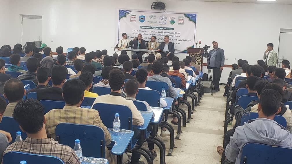 جامعة إب: ندوة ثقافية بكلية العلوم الإدارية بمناسبة عيد جمعة رجب والذكرى السنوية للشهيد القائد برعاية رئيس...
